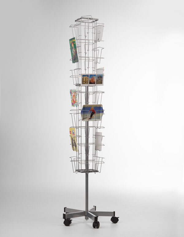 Ce présentoir en métal pour cartes de voeux est carré (4 côtés) et comporte un total de 32 cases, dont 14 cases verticales (2 côtés de 7 cases verticales), idéaux pour les cartes de vœux verticales de format A5 ou les grandes cartes de vœux carrées de 16 x 16 cm, et 18 cases horizontales (2 côtés de 9 cases horizontales), notamment pour les cartes de vœux ou les brochures de format A5 horizontal.